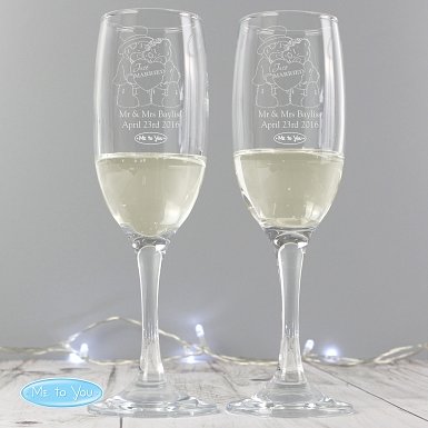 Personalised Me To You Engraved Wedding Pair of Flutes